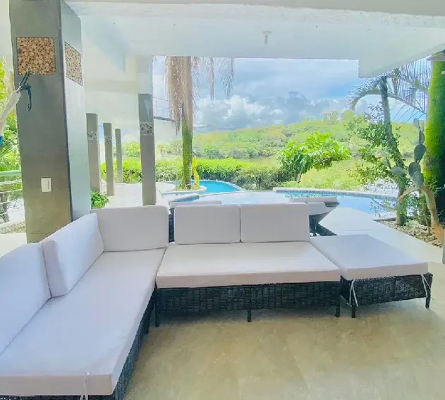 Con capacidad para 16 personas, cuenta con 4 habitaciones, 4 ½ baños, piscina privada, jacuzzi, 2 terrazas, wifi, DirecTV, aire acondicionado y ventilador en cada habitación, BBQ,
